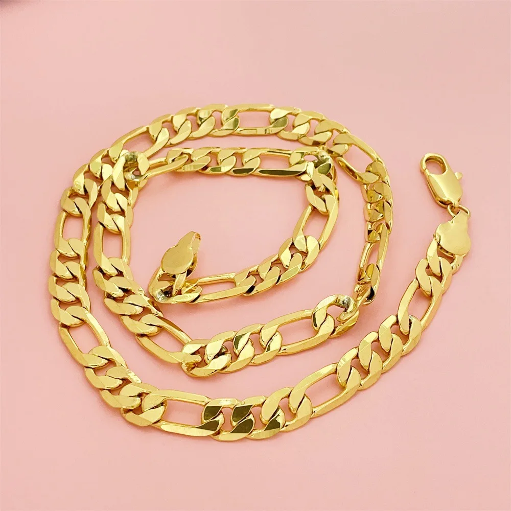 高級 24K 9999 純金製 本物のゴールドネックレス 10mm 幅 メンズ・レディース兼用 幾何学デザイン