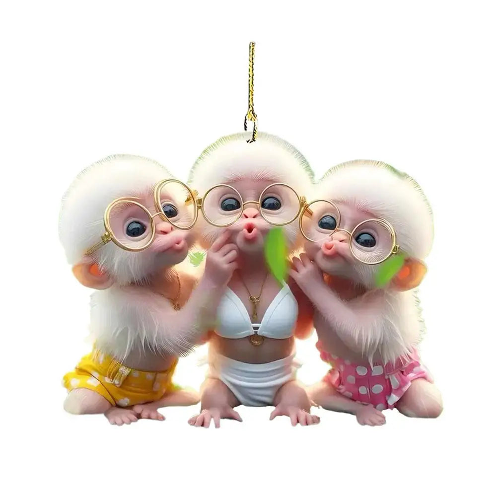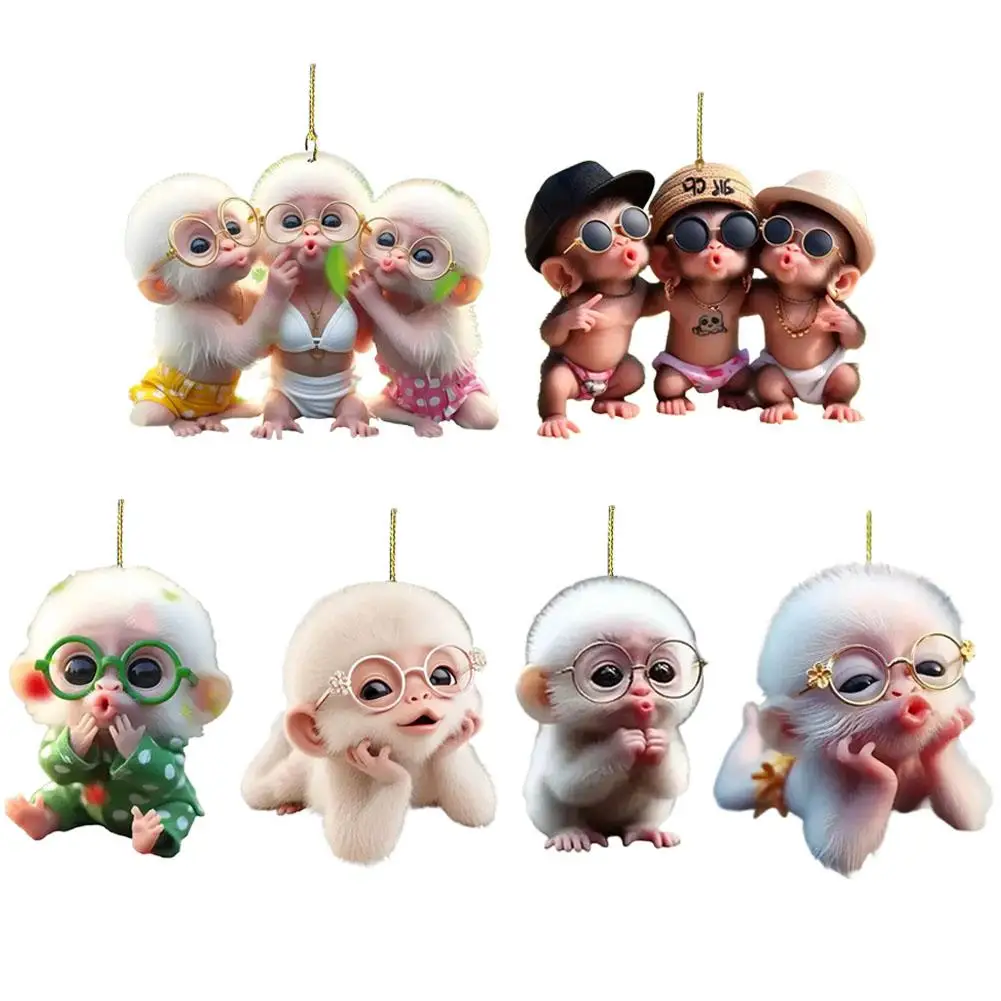 2Dアクリルモンキーペンダント|パーソナライズ装飾ペンダント クリスマスモンキーペンダント アクリルオーナメント 車用・カートゥン・クリスマスツリー飾りb