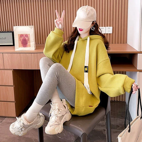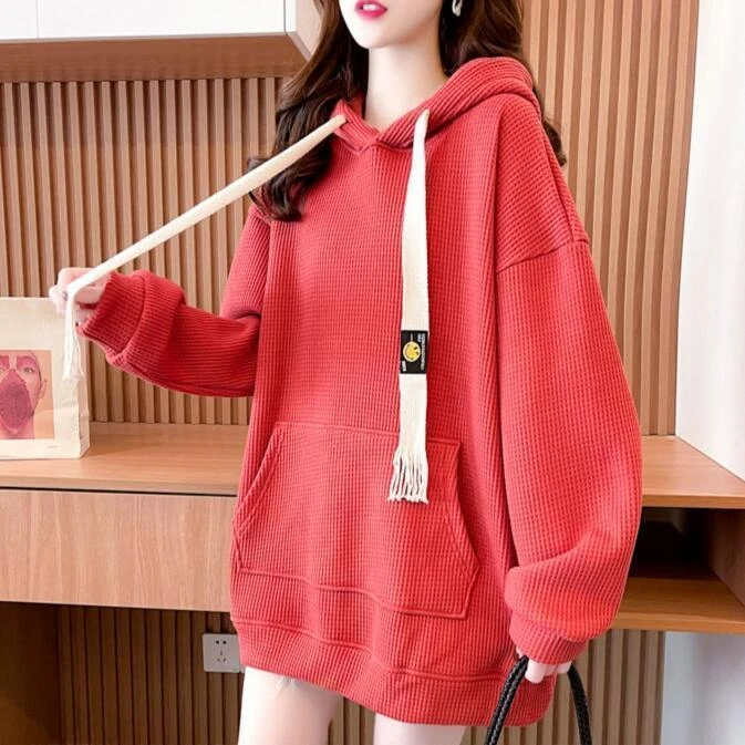 ストリートウェア 韓国ファッション レディーススウェットシャツ フーディー 春用フーディー 秋用フード付きトップス カジュアルで美しいルーズシルエット