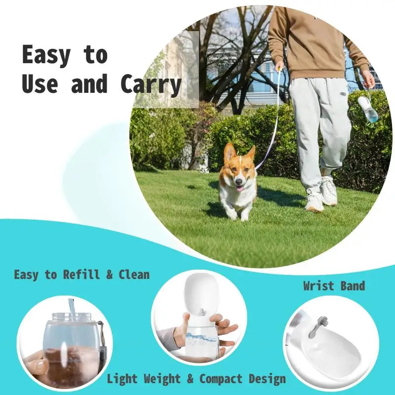 犬用ウォーターボトル 携帯用 300ml ペット用給水器 小型〜大型犬・猫用 アウトドア・散歩・旅行用 漏れ防止 飲みボウル付き