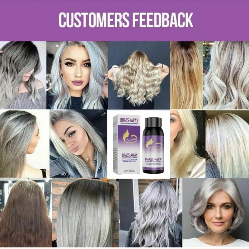 1. ヘアカラー後に色落ちすると黄色っぽくなりますが、パープルシャンプーを使うことで黄ばみを抑え、カラーの持ちを良くし、グレーカラーをより際立たせます