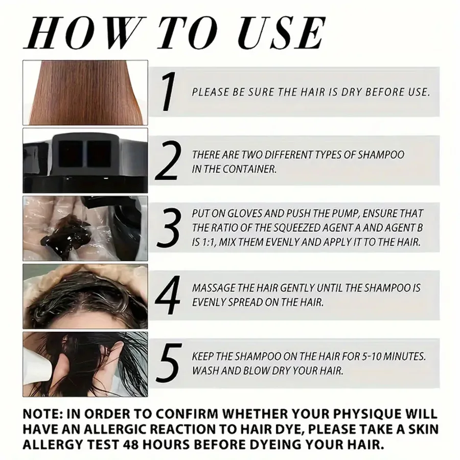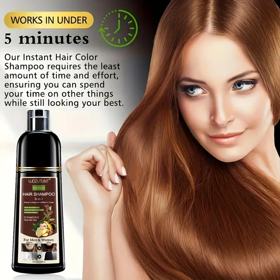 3-in-1 白髪染めシャンプー|わずか5分で白髪・グレーヘアを自然な髪色に!長持ちカラー・簡単使用・瞬間染毛シャンプー