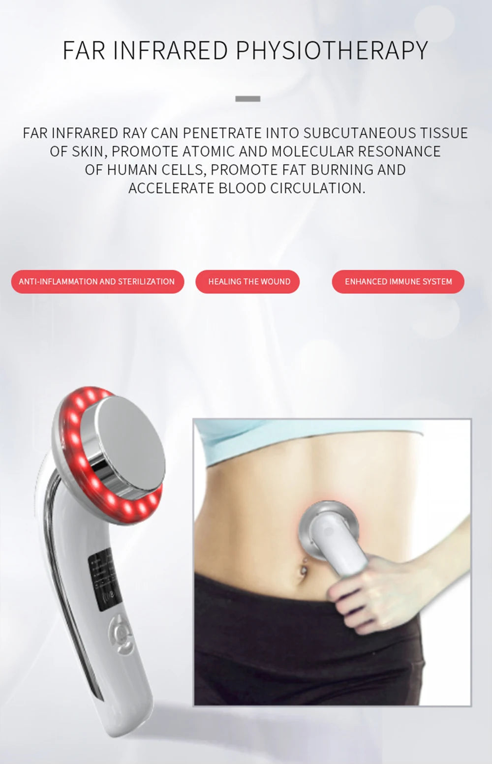 5. 1MHzの超音波と赤外線を採用し、痩身マッサージ、ボディライン形成、脂肪除去、筋肉引き締め、細胞再生、代謝促進など多機能対応。